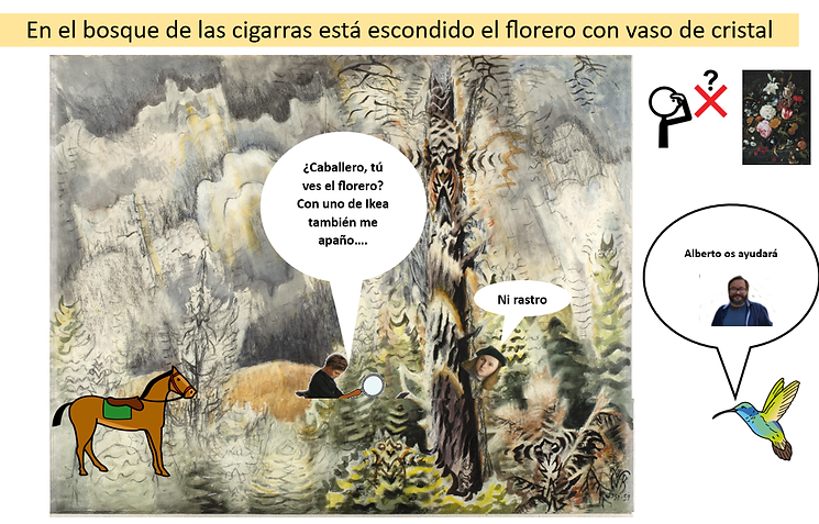 Las tres mujeres le cuentan que tiene que ir al Museo Thyssen. Allí tiene que buscar al colibrí. Helena pensó que era una idea genial, porque así, además de decorar su habitación, por fin visitaría un museo.